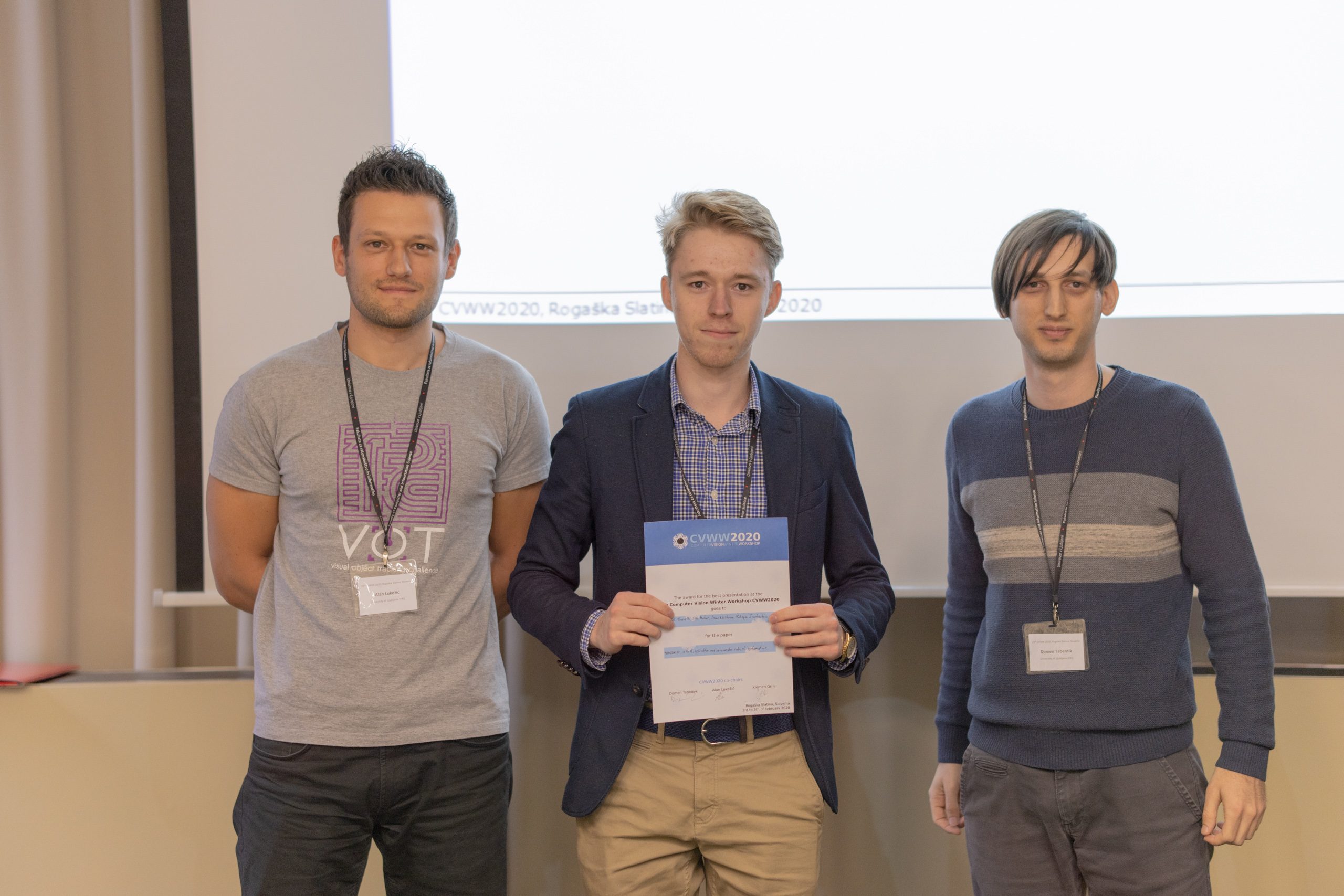 The Computer Vision Winter Workshop 2020 conference took place in Rogaška Slatina, Slovenia, on february 3-5 2020. This year, the conference was co-organized by members of the ViCoS lab from the faculty of computer and information science, and the LMI lab from the faculty of electrical engineering. The conference was attended by students, researchers and specialists from five different countries. LMI members presented two papers at the conference.